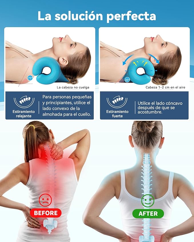 Fisioterapeutas recomiendan dispositivos como este para aliviar presión cervical y promover una relajación profunda